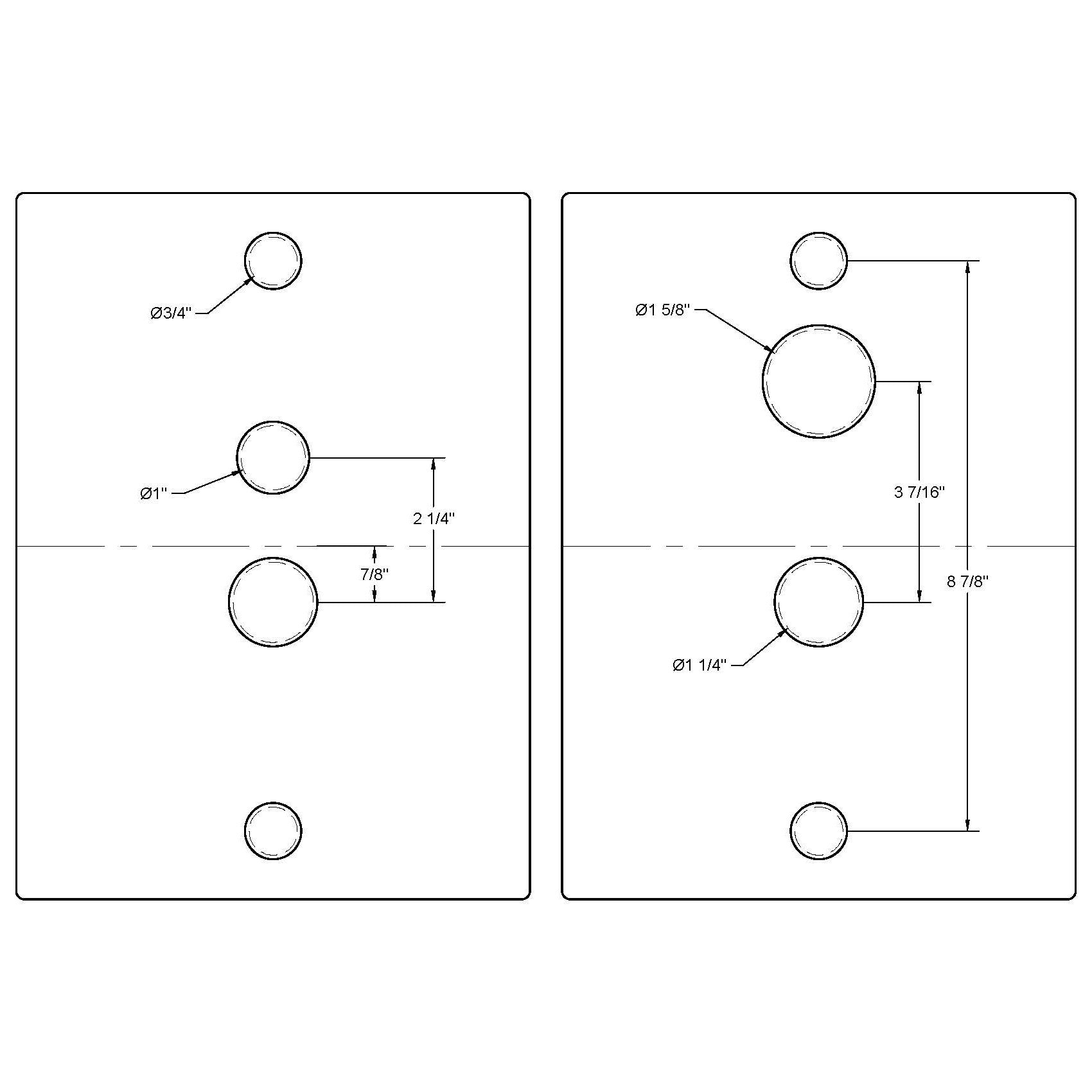 Don't like what you see? Request a custom made template with the specifications you would like. This would include part numbers or product descriptions of the hardware you are prepping a slab for. Our product engineers can whip something up to your liking so you can get your work done fast and with precision.
